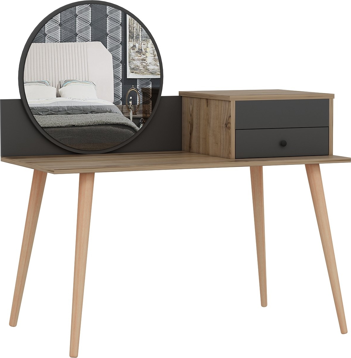 Angel sminkbord 120 x 60 cm - Antracit/valnöt
