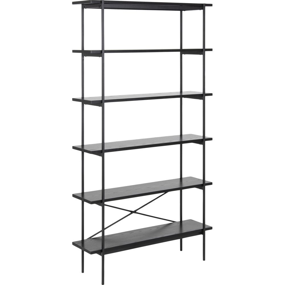 Bokhylla. Ram av pulverlackerad metall. Hyllplan av MDF och melamin.