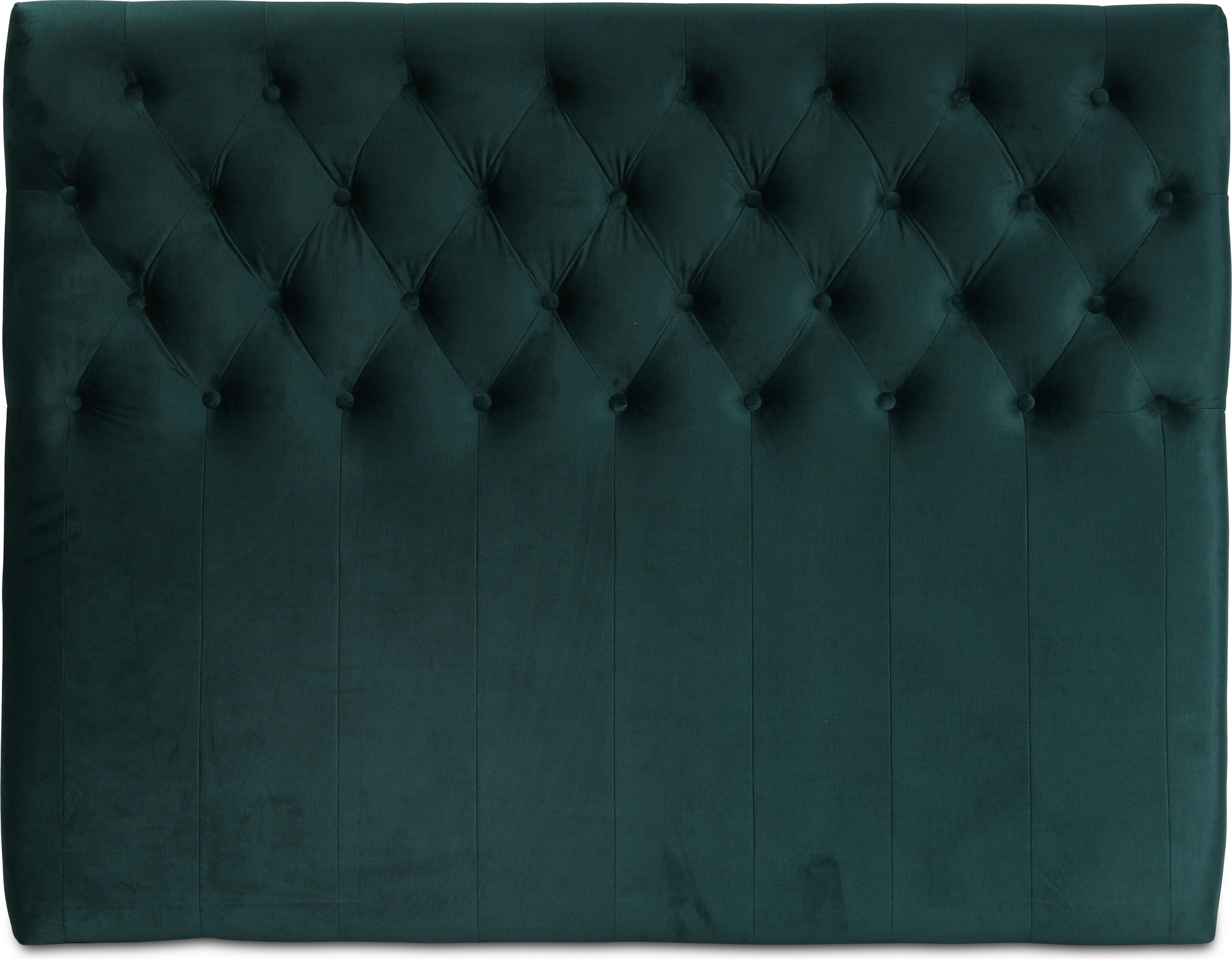 Sänggavel Anna i ett mörkgrönt sammetstyg med en mjuk känsla. Snygg design med djuphäftade knappar för att ge ett lyxigt utryck i sovrummet.
