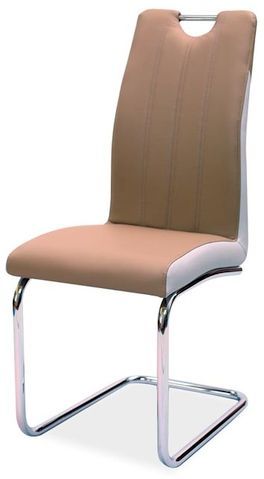 En snygg matstol med en modern design. Underredet är tillverkat av kromad metall och sitsen är klädd med ett mycket behagligt konstläder för maximal komfort.