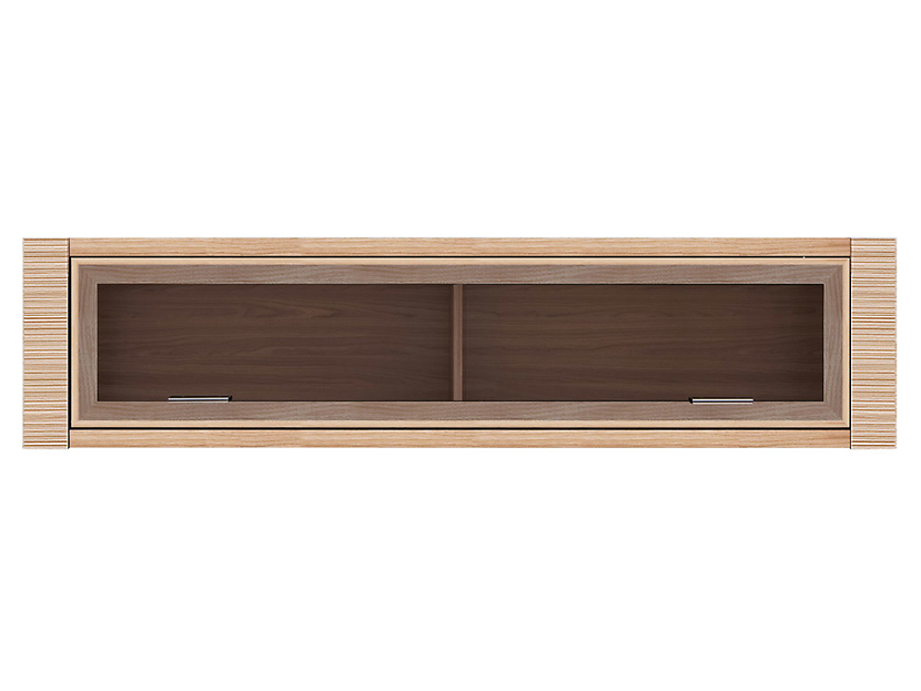 Stilfullt väggskåp i valnötsimitation med en öppningsbar front av härdat glas. Kombinera gärna med andra möbler i samma serie.
