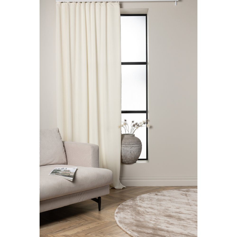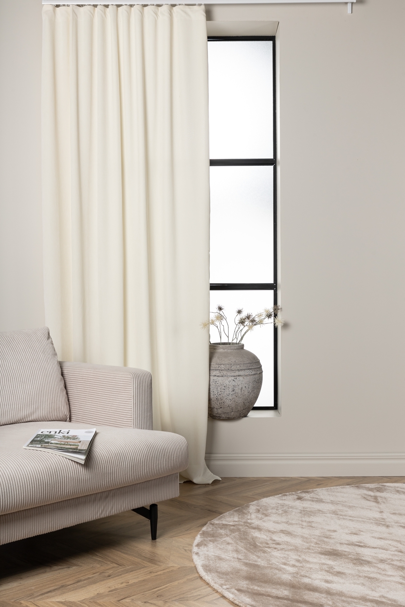 Gardinlängd i polyester med manchesterkänsla. Kombinera med en skir gardin i lager på lager eller använd gardinlängderna ensamma och sätt din egna touch på inredningen. Gardinerna har ett påsytt multifunktionsband som gör det möjligt att välja upphängningsmetod själv. Välj mellan fingerkrokar eller dold hälla.