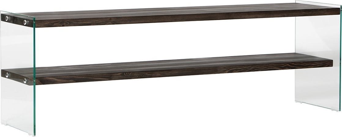 Mediabänk av trä och tempererat glas.
