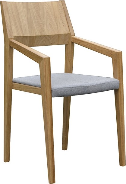 Karmstol i bok eller ek med valfri färg på stomme och klädsel. Levereras monterad.