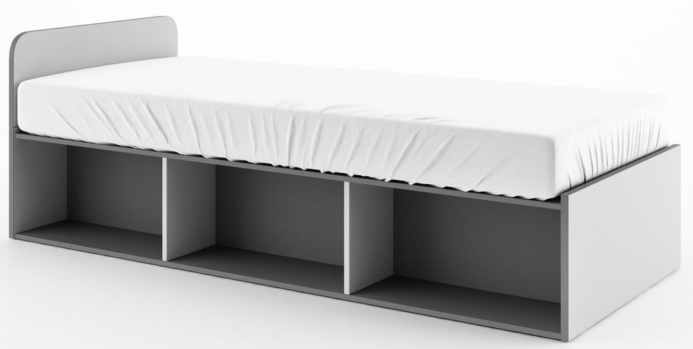 En mysig säng för barn med smart förvaring. Tillverkad i MDF med tre hyllor undertill för diverse förvaring.