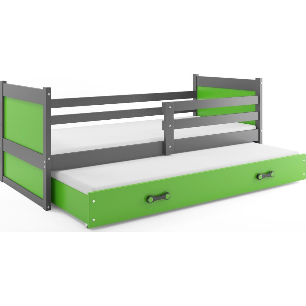 Säng med utdragbar extrabädd på hjul. Sängen är byggd på en stomme i massiv furu med ribbor av björkträ som vilar på metallskenor. Sidor och panel är av MDF. Sängen är lackad/målad med vattenbaserad allergivänlig lack/färg. Vid montering är placering av säkerhetsbarriären valfri och kan uteslutas helt. Madrassen av 7 cm:s polyuretanskum har ett överdrag av hypoallergent polyestertyg. Överdraget är försett med blixtlås och kan tas av för tvättning. Sängen är tillverkad efter TÜV:s kvalitets- och säkerhetsstandard. Sängen levereras omonterad.
