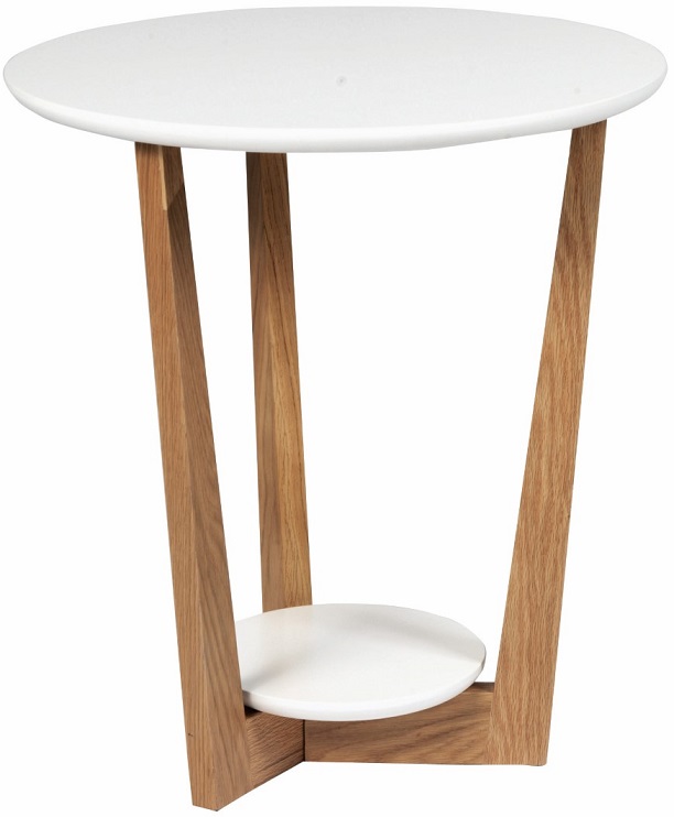 Detta stilrena sidobord / lampbord tillhör möbelserien Arild, som erbjuder funktionella möbler med en ren skandinavisk och stilig design. Soffbordet har en bordsskiva i vitlack med massiva ben i oljad ek.