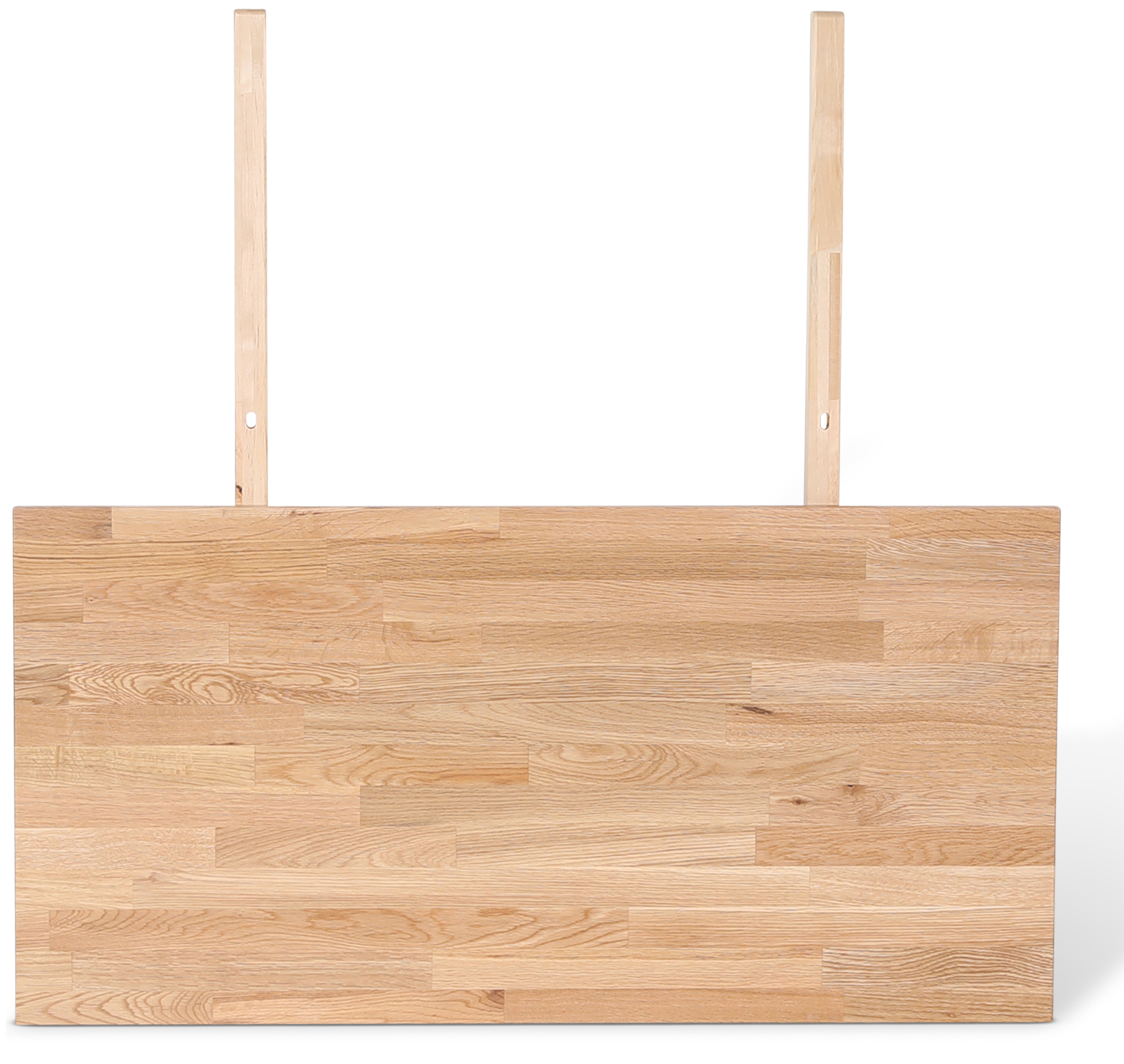 För att hållbarheten i skivan ska bli så bra som möjligt så lägger vi träet tvärsgående (motsatt riktning mot bordets träriktning). Detta förhindrar att träet slår sig och gör att du får en tilläggskiva som du kan använda under lång tid framöver. Observera att skivans bredd är någon cm större än matbordet till att börja med. När träet krymper efterhand som det torkar så kommer skivan att få samma bredd som bordet.