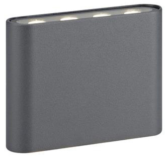 Arion vägglampa med en stilren design för utomhusbruk. Tillverkad i pulverlackerad aluminium med täckglas. Lyser både upp- och nedåt. 6W fast LED. 720 Lumen, 3000K. Fast, jordad installation. Lampan passar perfekt till att montera längst väggar på exempelvis hus, uteplatser eller garage.