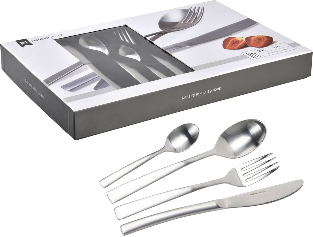 Arn är ett bestickset i högpolerat rostfritt 18/0-stål innehållande sex knivar, sex gafflar, sex skedar och sex teskedar. Besticken kan smidigt tvättas i diskmaskin.