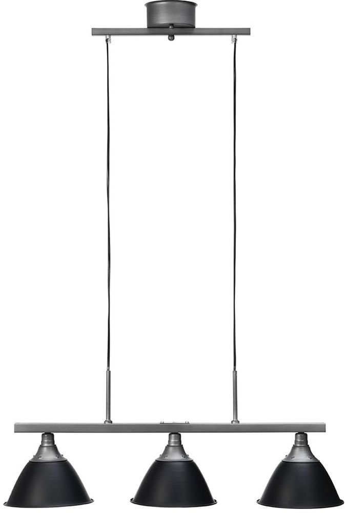 En stilren taklampa med en modern design. Tillverkad i metall med tenn utförande och svarta metall skärmar.