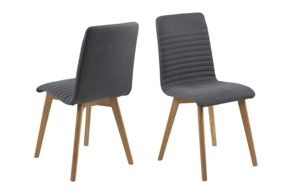 Stilrent och skön matstol från vår Arosa serie, klädd i mörkgrått tyg. Oljebehandlade ben i massiv ek.