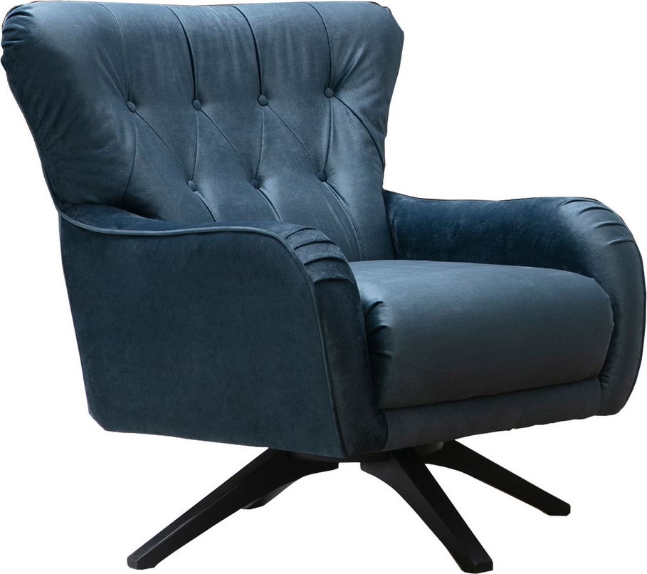 Fåtölj av bokträ och klädsel av polyester. Fåtöljen har ett tyg som går att kemtvätta.