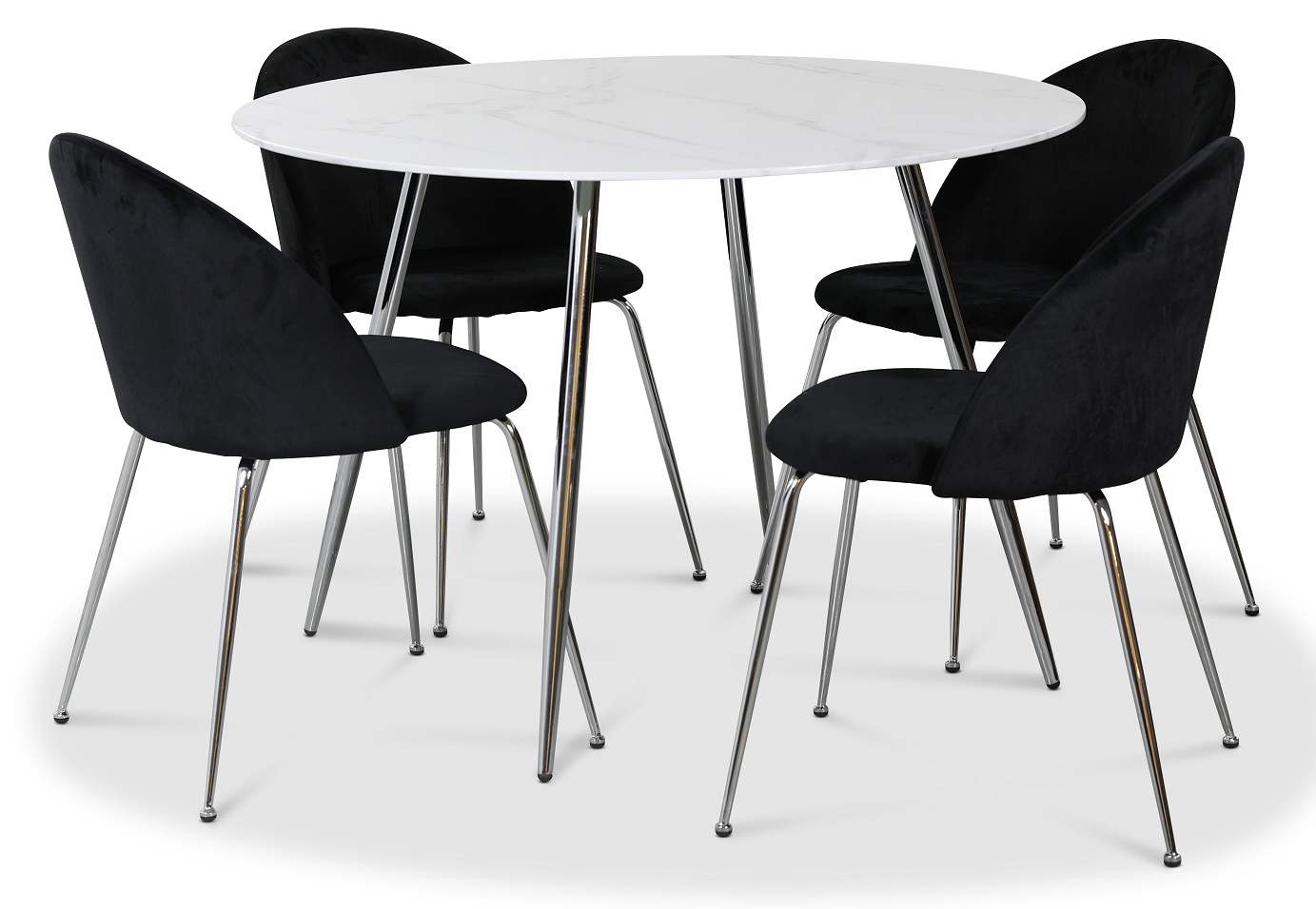 Art matgrupp, 110 cm runt bord + 4 st svarta Art stolar