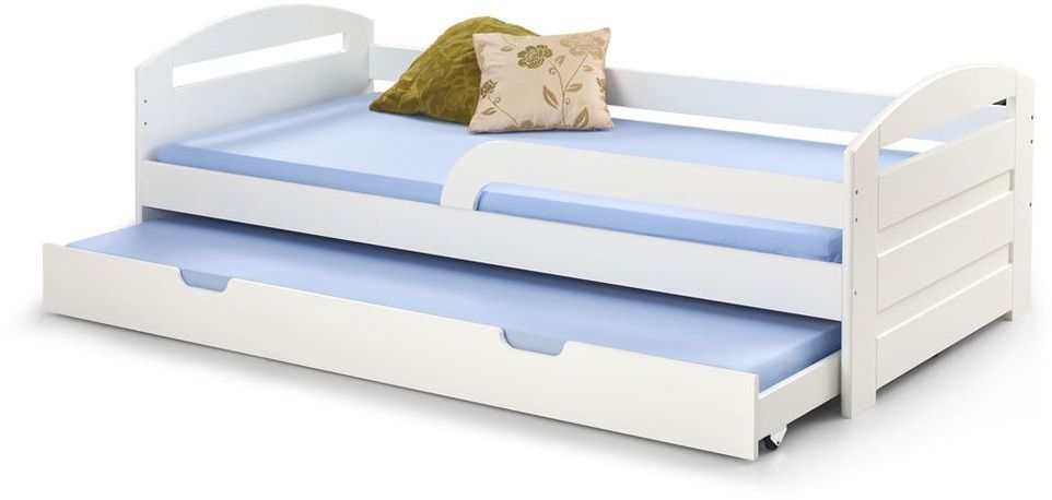En mysig sängram som passar perfekt in i barnens rum. Tillverkad helt i vitlackerad MFP (premium träskiva), med ett utdragbart fack undertill som kan användas som förvaringsutrymme eller som en extra säng. Anpassad för madrasser med måtten 90x200 cm.
