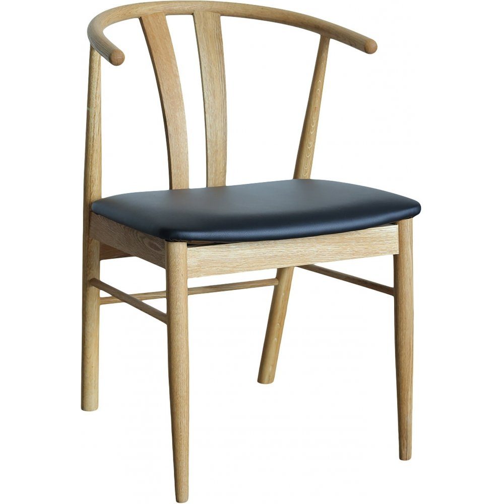 Karmstol av ek med klädsel av konstläder. Levereras monterad.