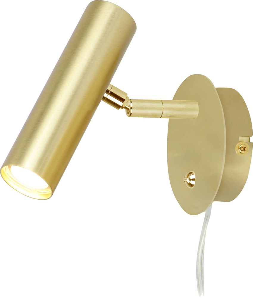 Vägglampa i mässing utförande. Monteras lätt fast på väggen. Strömbrytare på lampan.