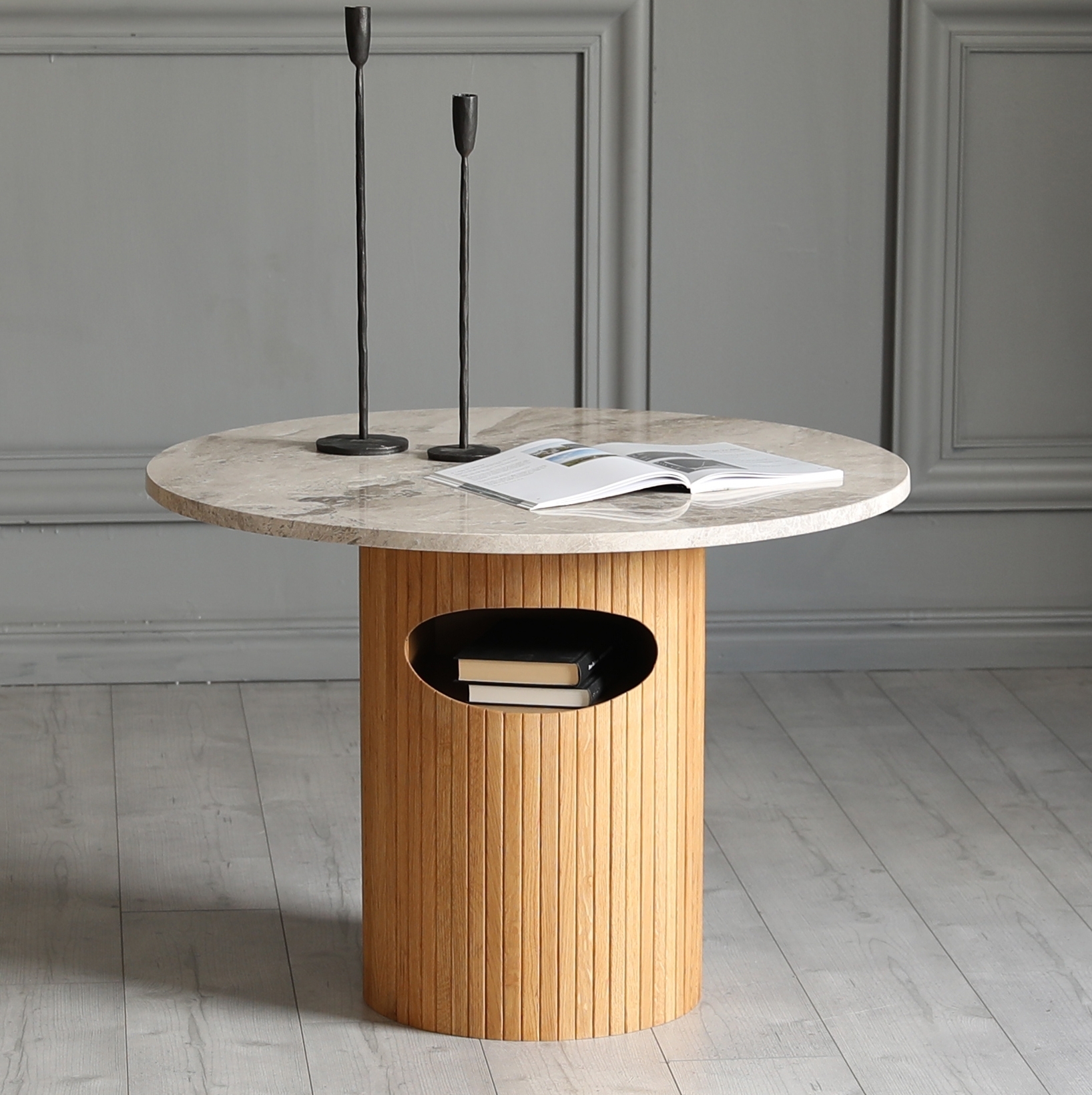 Arto runt soffbord höjd 60 cm - Ek / Ljus europeisk marmor