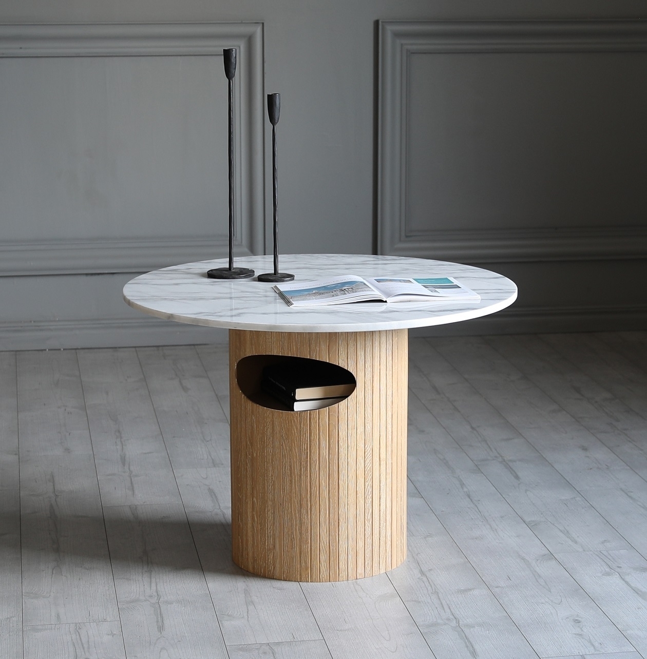Arto runt soffbord höjd 60 cm - Whitewash / Vit marmor