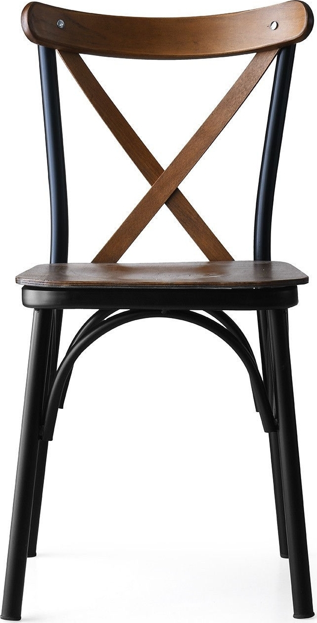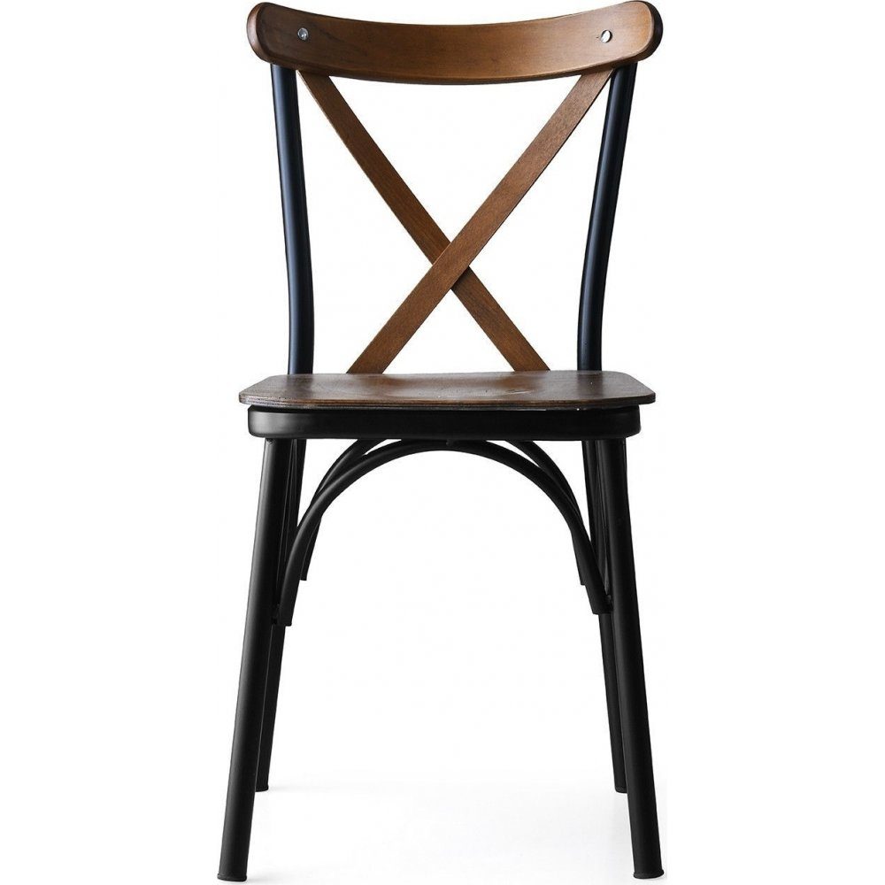Stol av metall med sits av trä. Set med 4 st stolar.