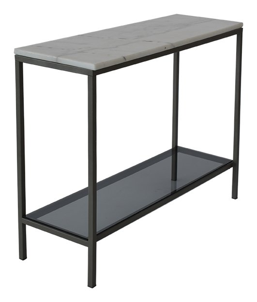 Ascot avlastningsbord med en vit marmortopp och grålackat underrede. Ascotär en stilren möbel med vacker design och en mycket lång hållbarhet tackvare materialvalet. Hylla av tonat och härdat glas!