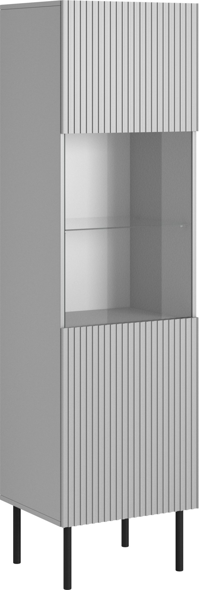 Vitrinskåp av laminerad MDF och glas med ben av metall.