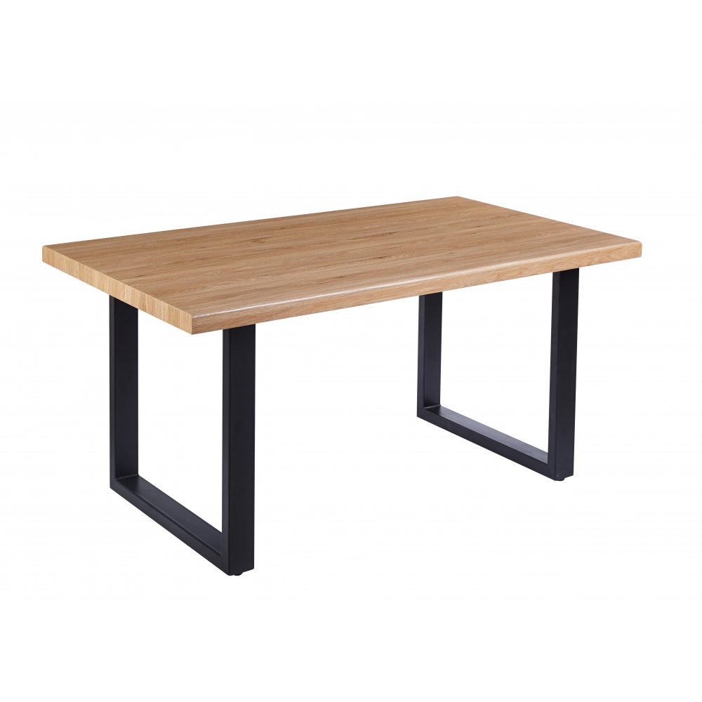 Aster matbord med ett stadigt underrede i svartlackad metall. Matbordet har en massiv bordsskiva i MDF med ekfoliering och rundade långsidor för att få rätt uteseende och känsla. Matbordet har plats för 4 till 8 personer.