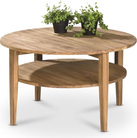 Runt soffbord, robust och naturfärgat i oljad ek. Praktisk hylla undertill gör att du kan förvara en del saker även om bordet inte är så stort.