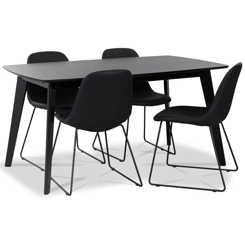 Atlantic matgrupp: Oliver matbord HPL + 4 st Atlantic sled stolar svart PU