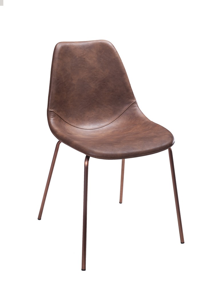 Stilfull stol i kopparfinisch klädd med PU och underrede av stål.