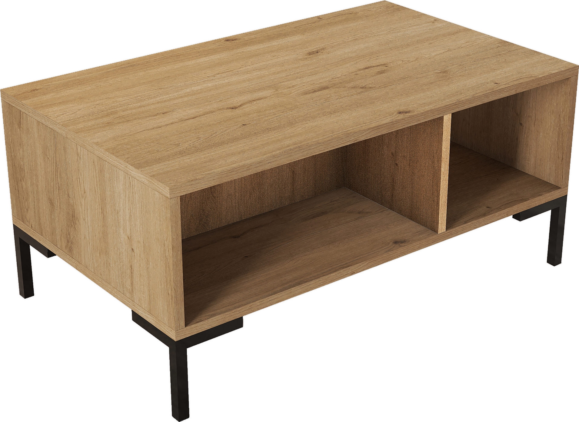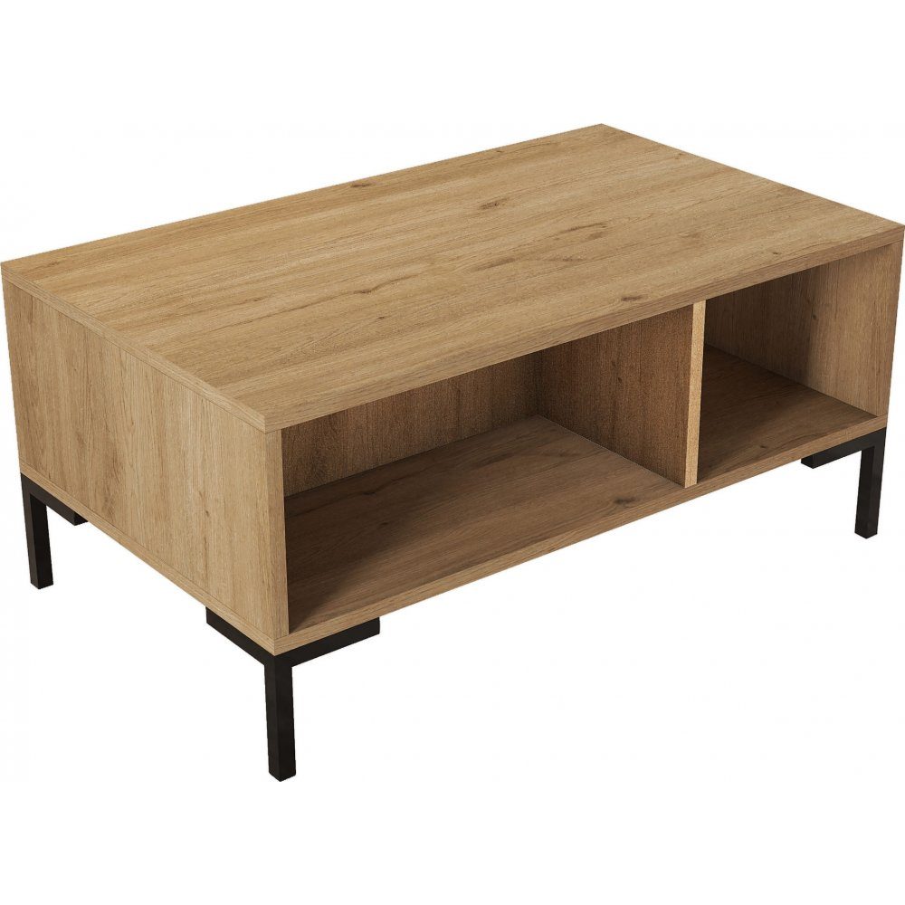 Soffbord av trä med ben av metall.