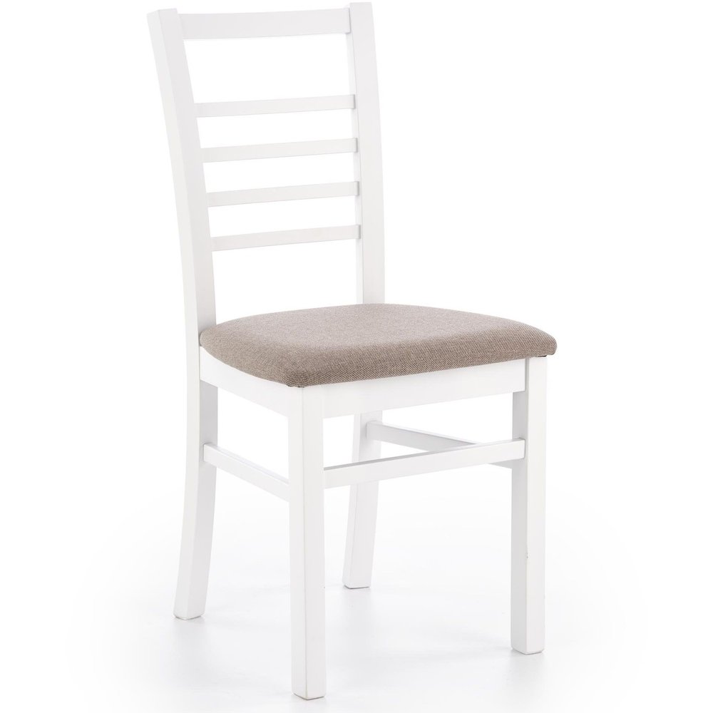 En fin matstol med en klassisk design. Matstolen är tillverkad av solid trä och sitsen är klädd med ett mycket behagligt tyg för maximal komfort.
