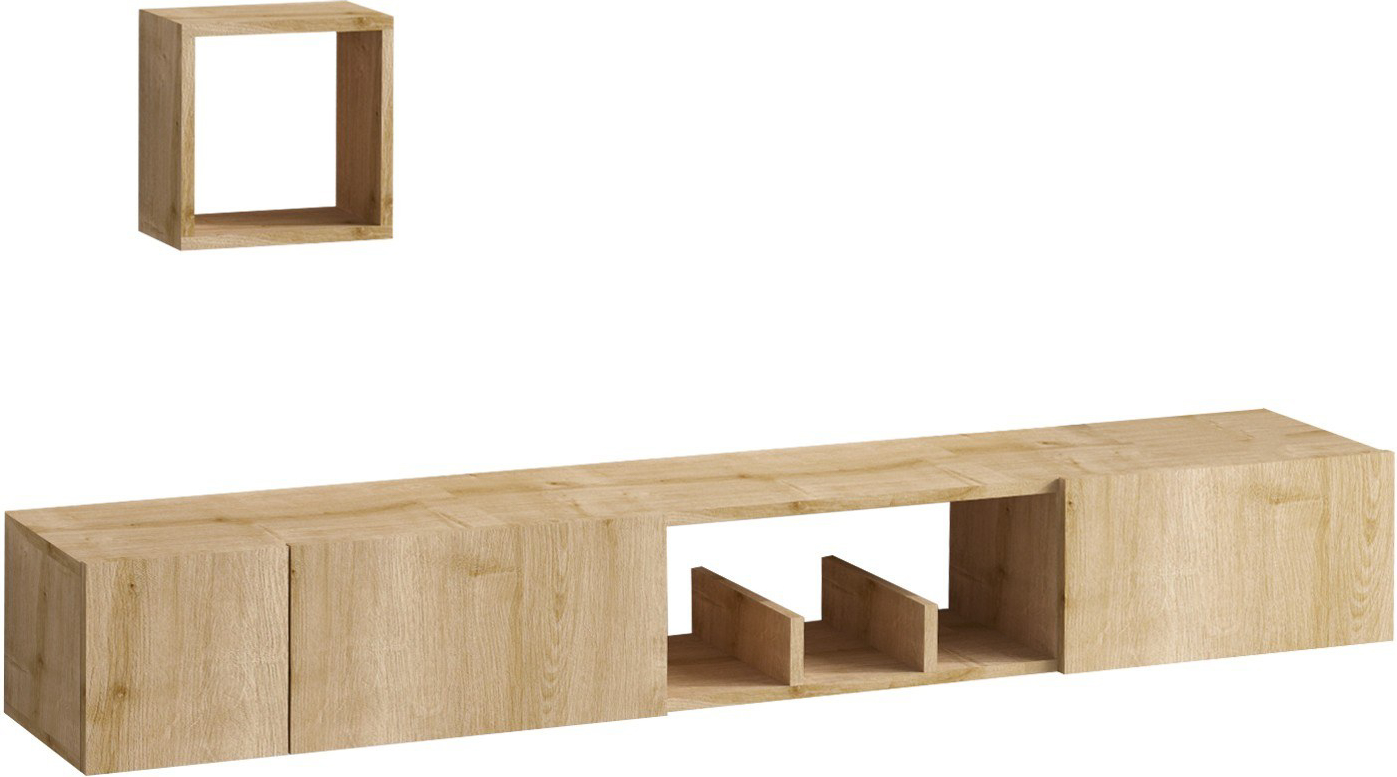 Med en mediabänk med rymliga lådor och medföljande vägghylla erbjuder denna enhet gott om förvaringsmöjligheter för dina mediaenheter, böcker och dekorativa föremål. Mediabänken är utformad för att rymma TV-apparater upp till 180 cm breda. Vägghyllan och byrån ger extra utrymme för att visa upp dina favoritsaker, samtidigt som du håller ditt vardagsrum organiserat och fritt från oreda.