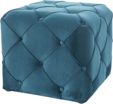 Sittpuff i plywood. Klädd med polyestertyg i sammetsimitation.