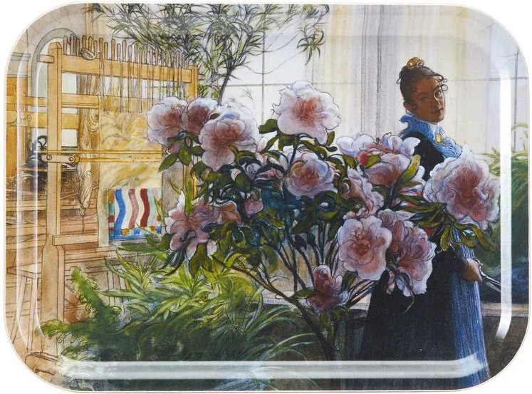 Karin och Carl Larssons konstnärskap verkade i stark symbios - hon skapade hemmet som han avbildade. Tillsammans skapade de motiven som har kommit att prägla bilden av Sverige och som älskas över hela världen. Genom att köpa produkter från officiella partners är konsumenten med och bidrar till att bevara Carl Larsson-gården och dess unika kulturarv. Laminatbricka som är tillverkad i Sverige och är FSC certifierad vilket innebär att allt trä och träfibermaterial kommer från skogar som brukas långsiktigt och ansvarsfullt. Brickan godkänd för att användas tillsammans med mat. Mått 20x27cm.