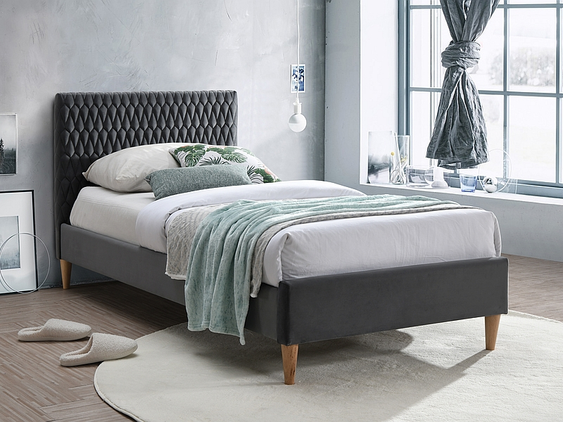 Azurro sängram 90x200 cm - Grå sammet