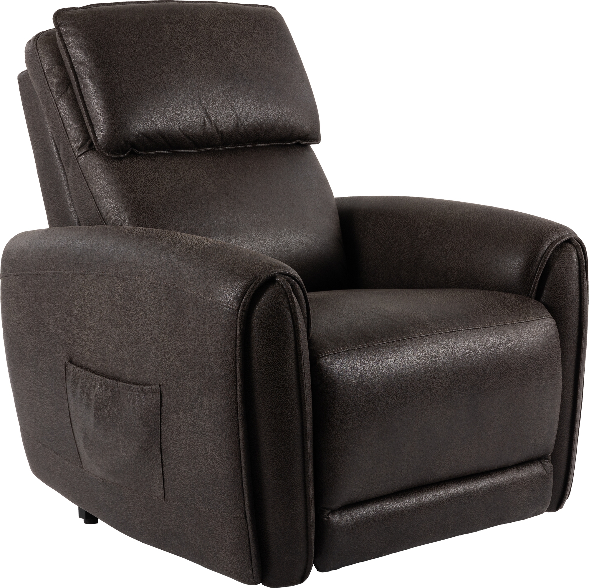 Reclinerfåtölj i brunt tyg med recliner- och lyftfunktion.