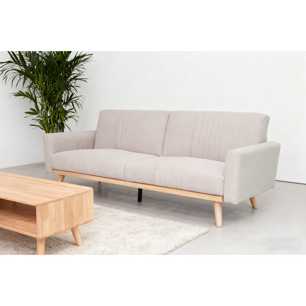 Tack vare sin generösa längd på 207 cm rymmer Borlänge bekvämt två personer vid sittläge och kan enkelt fällas ut till en säng med samma längd. Den fasta konstruktionen med ben i massivt trä ger stabilitet och ett luftigt intryck, samtidigt som 20 cm benhöjd gör den lätt att hålla ren undertill.