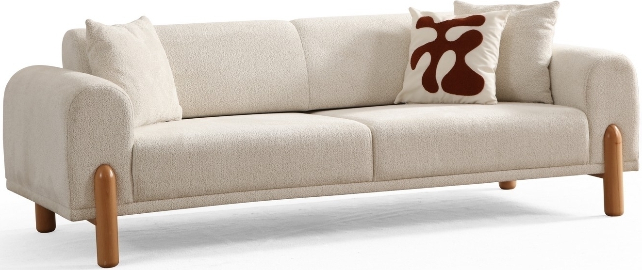 Lyke 3-sits bäddsoffa i cream är en elegant och funktionell möbel som ger ditt vardagsrum en ljus och inbjudande känsla. Den ljusa creamfärgen ger soffan ett fräscht och sofistikerat uttryck, vilket gör den lätt att integrera i olika inredningar. Med sin smidiga bäddfunktion omvandlas soffan enkelt till en bekväm säng, vilket gör den idealisk för gästrum eller mindre utrymmen.