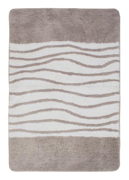 Taranto badrumsmatta har bottenfärg i naturton, med vitt och naturfärgat vågmönster. Mattan har en tät lugg som gör den mjuk att stå på och undersidan utav mattan är gummerad, vilket gör att den ligger stadigt på golvet. Taranto badrumsmatta är gjord i materialet microfiber som har bra förmåga att lösgöra smuts och absorbera vätska, vilket gör den snabbtorkande.