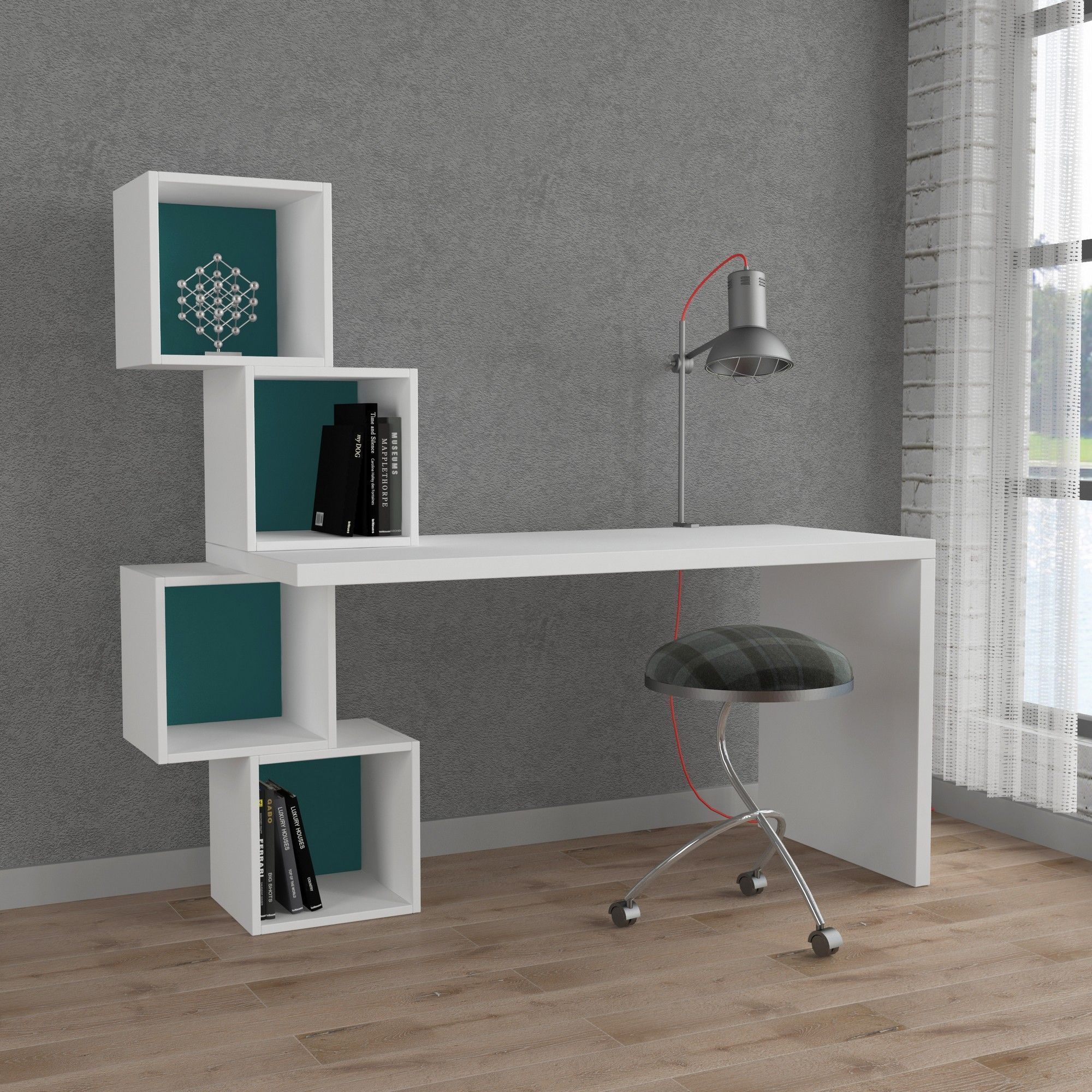 Balance skrivbord 157,5x60 cm - Vit/turkos