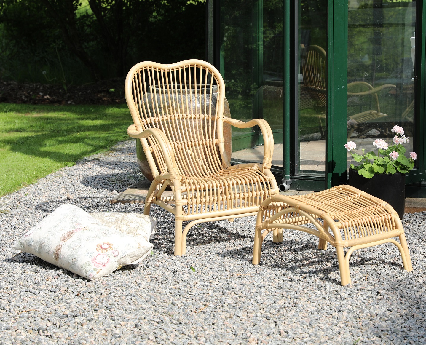 Bali fåtölj med fotpall i rotting - Natur