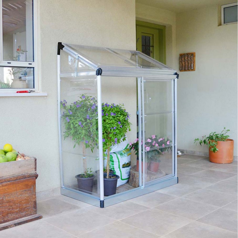 Balkong växthuset Lean är ett praktiskt litet växthus för den odlingsintresserade som har en balkong eller en mindre yta till sitt förfogande. Inred växthuset med hyllor så får du plats med både kryddor och tomater.