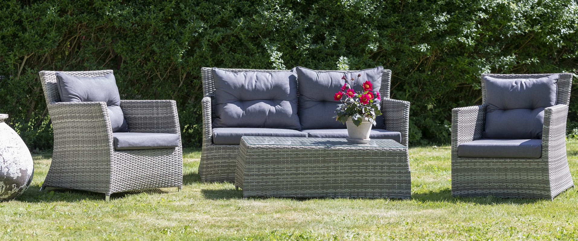 Ballingslöv Lyx utegrupp: soffa, fåtöljer och bord - Ljusgrå konstrotting