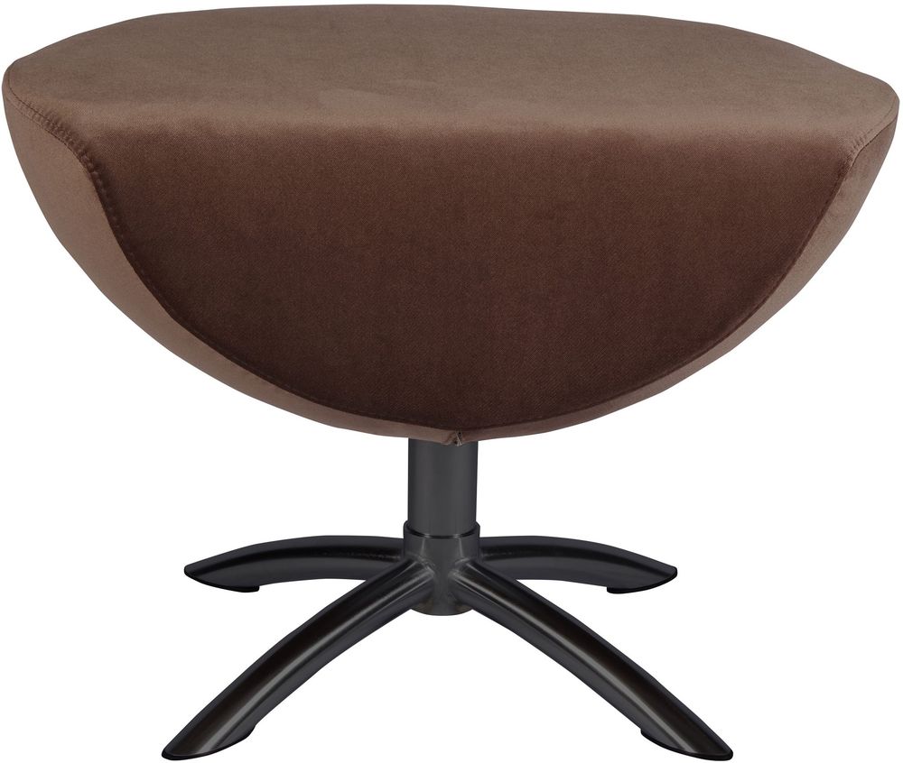 En mysig fotpall med en retro design. Pallen är klädd med ett mycket behagligt brunt sammet tyg för maximal komfort och underredet är av svartlackerad metall.