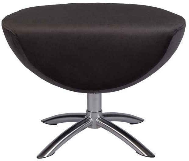 En mysig fotpall med en retro design. Pallen är klädd med ett mycket behagligt kolsvart tyg för maximal komfort och underredet är av borstat stål.
