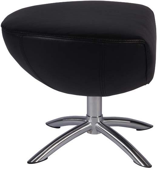 En mysig fotpall med en retro design. Pallen är klädd med ett mycket behagligt svart skinn för maximal komfort och underredet är av borstat stål.
