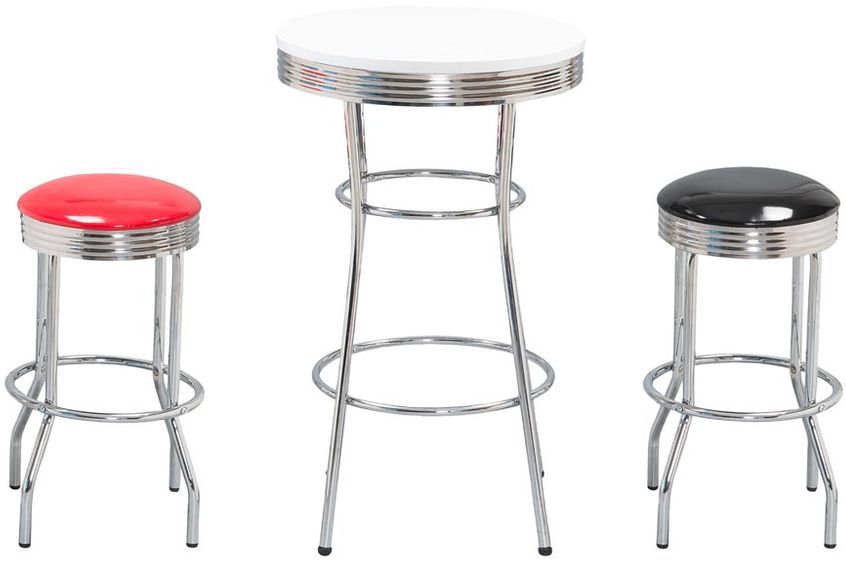 Ett härligt barbord med en klassisk design. Underredet är tillverkat i kromad metall och bordsskivan är av vitlaminerad MDF. Bordet passar perfekt in i hushållet och kombineras lätt tillsammans med ett par barstolar.