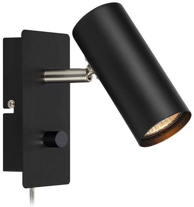 Barcelona stilren vägglampa i metall. Vridbart och ställbart lamphuvud. Inbyggd LED dimmer/strömbrytare på väggplattan. 2 meter transparent sladd. Kopplingsbox i plattan för att enkelt kunna montera på direkt inkommande el.