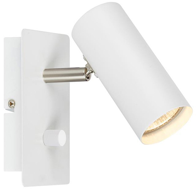 Barcelona stilren vägglampa i metall. Vridbart och ställbart lamphuvud. Inbyggd LED dimmer/strömbrytare på väggplattan. 2 meter transparent sladd. Kopplingsbox i plattan för att enkelt kunna montera på direkt inkommande el.
